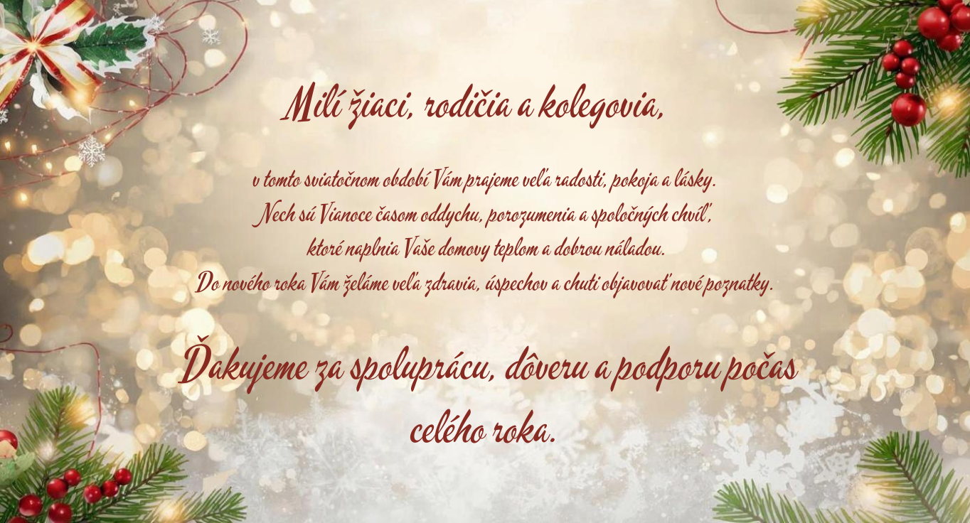 Milí priatelia, Vianoce prinášajú do našich životov atmosféru pokoja, radosti a spolupatričnosti. Aj v tomto školskom roku sa študenti našej školy zapojili do tvorby originálnych vianočných pozdravov v rôznych cudzích jazykoch. Cieľom aktivity bolo rozvíjať ich kreativitu, jazykové zručnosti a zároveň sprostredkovať sviatočné posolstvo ľuďom z rôznych kultúr.