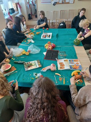 Študenti sa oboznámili so základnými carvingovými nástrojmi a jednoduchými technikami vyrezávania. Praktická činnosť im umožnila precvičiť si jemnú motoriku, trpezlivosť a estetické cítenie, ktoré sú dôležité pri príprave a prezentácii pokrmov.