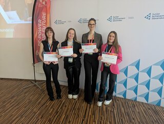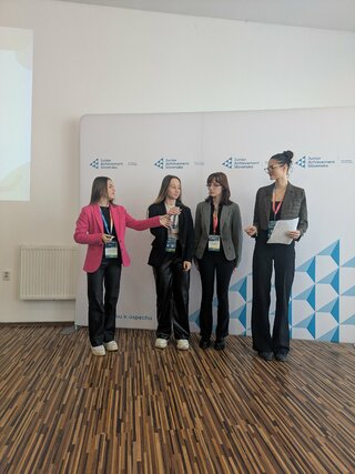 Dňa 10. februára 2026 sme v Žiline mali možnosť zažiť skvelú atmosféru súťaže JA Slovensko – RE-POWER CAMP, ktorej cieľom je stimulovať kreatívne a inovačné schopnosti študentov. Tejto súťaže sa zúčastnili dva tímy z našej školy, tím žiačok z III.AW odboru manažment regionálneho cestovného ruchu a tím žiačok III.AW z obchodnej akadémie. Celkovo dvadsať štvorčlenných tímov z celého Slovenska pracovalo na reálnej výzve naživo a súčasne prebiehal Virtual Camp v 6-členných školských tímoch online. Úlohou každého tímu bolo nájsť v obmedzenom čase najlepšie riešenie na tému, ktorá sa týkala cirkulárnej ekonomiky. Žiaci navrhovali projekt, iniciatívu alebo kampaň, ktorá dokáže využívať princípy cirkulárnej ekonomiky. V silnej konkurencií dievčatá dokázali zaujať nielen porotu, ale silným potleskom ich ocenilo aj publikum. Skúsenosťou sa dostávame k úspechu a bolo obdivuhodné sledovať, ako naši žiaci napredujú. Podujatie bolo výborne zabezpečené zo strany organizátora, žiaci sa priblížili k fungovaniu reálneho prostredia a získali nové skúsenosti a zážitky.