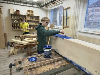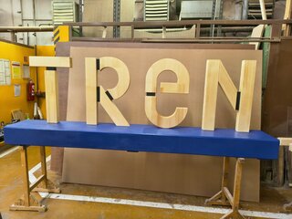 Úlohou našich žiakov učebného odboru stolár pod vedením pána majstra Bc. Pečenkára bolo vyrobiť veľkorozmerný drevený nápis „TRENČÍN“, ktorý bude umiestnený v exteriéri, pred budovou Trenčianskeho samosprávneho kraja.