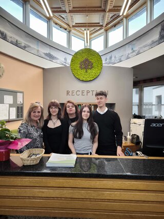 Ďalšie dve študentky - Natália a Kristína - pôsobili na recepcii a v hoteli Landhotel Schicklberg****, kde získali cenné odborné skúsenosti s prácou so zákazníkmi, organizáciou ubytovania a podporou ekologických aktivít. Naučili sa, že aj malé kroky – napríklad šetrenie energiou a vodou alebo používanie ekologických produktov – môžu urobiť veľký rozdiel.